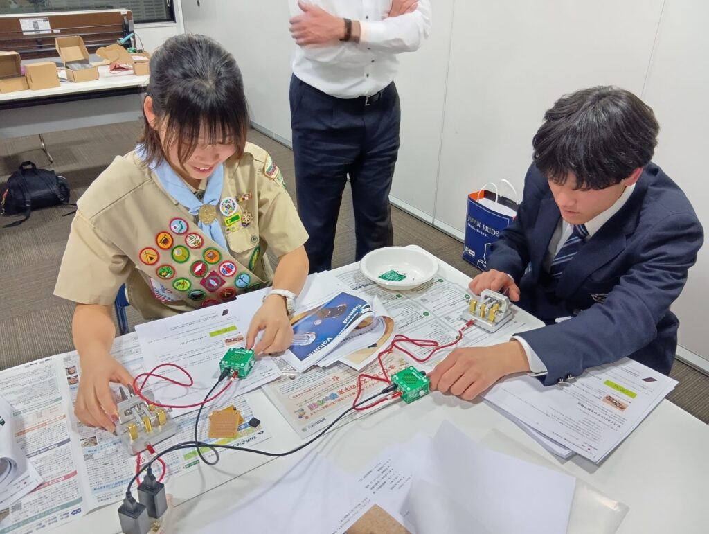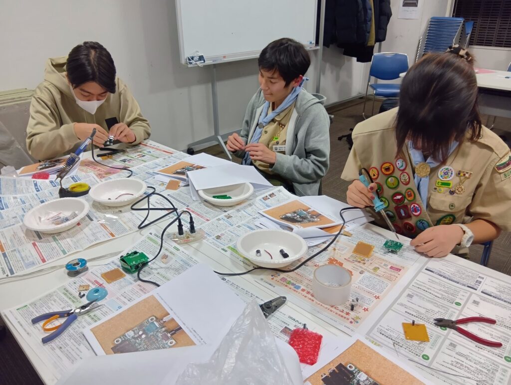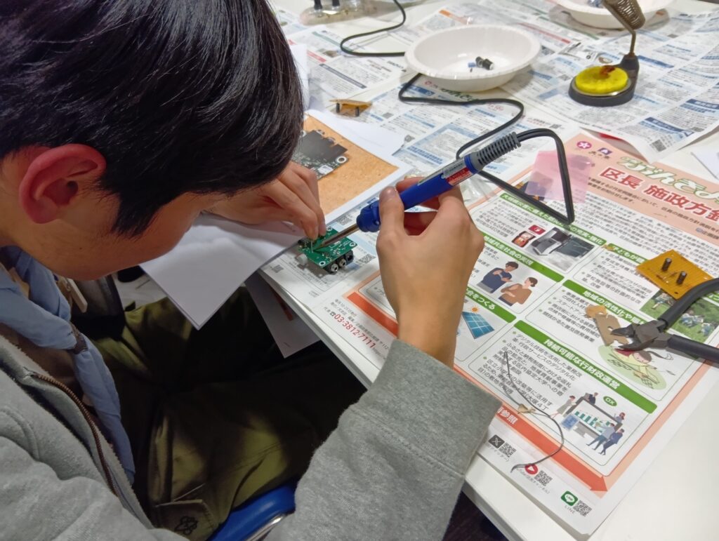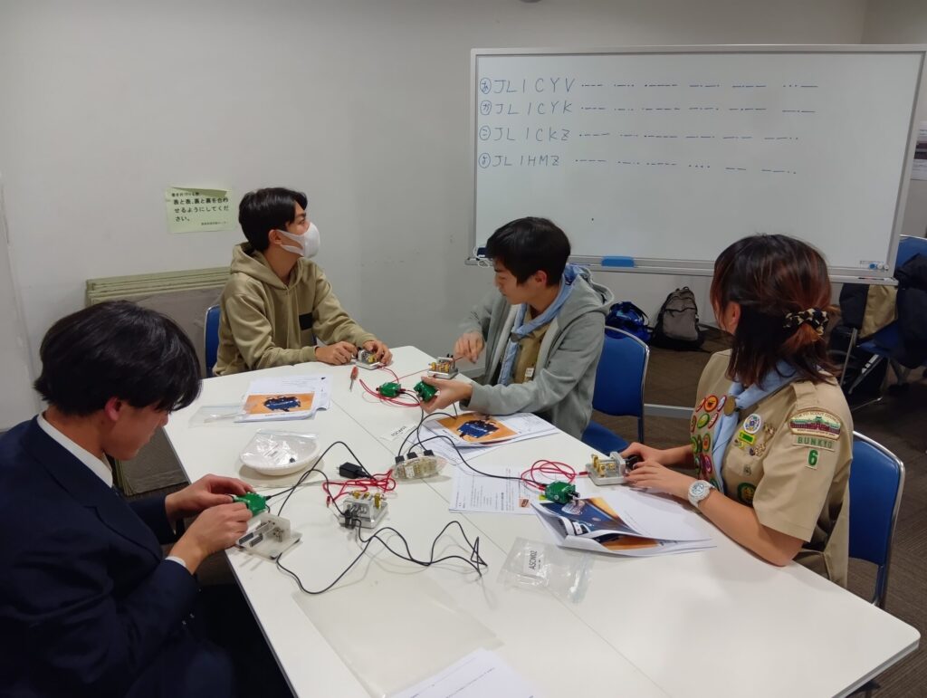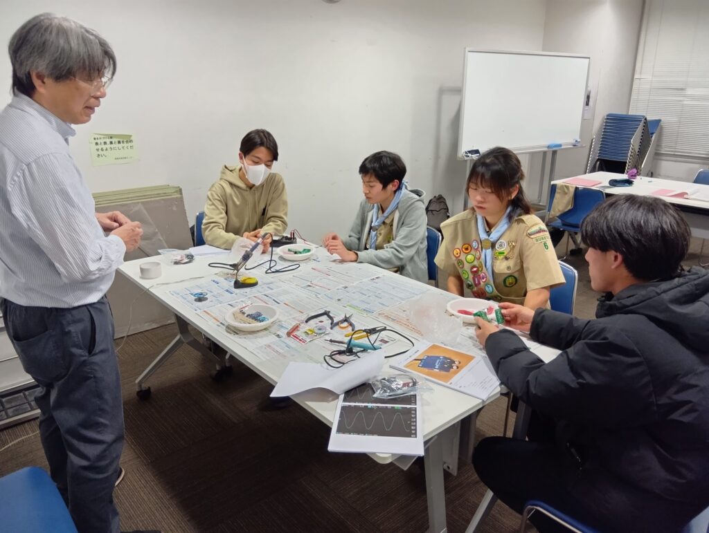 「モールス発信機を製作し自局のコールサインを打鍵する」を目標に、JARL東京都副支部長を講師にお招きして実習しました。