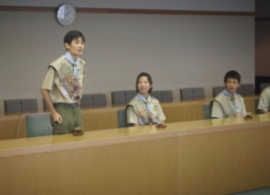 隼章受賞スカウトによる文京区長表敬訪問